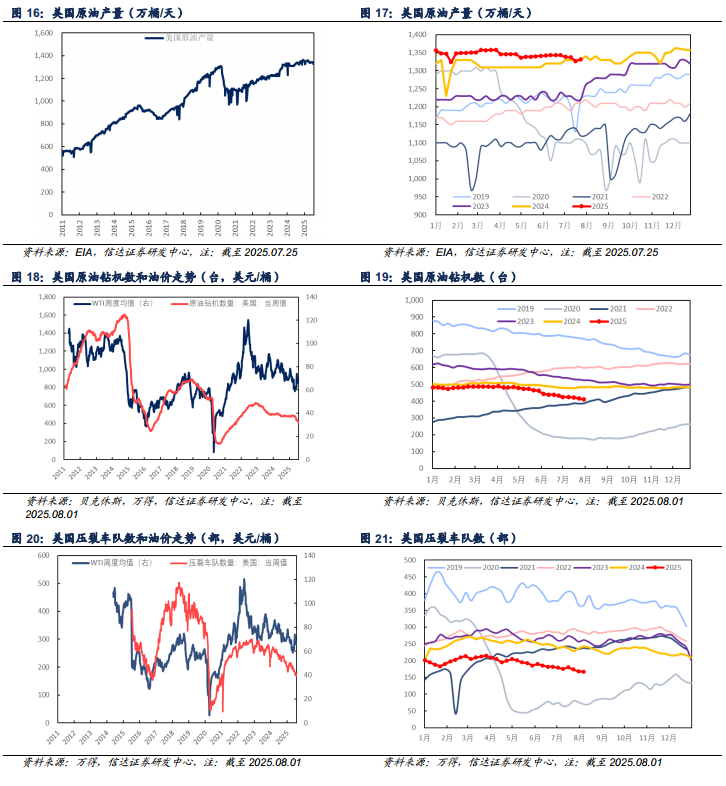 压裂板块:截至2025年08月01日当周,美国压裂车队数量为167部,较上周减少1部。